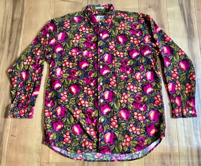 ビンテージ コーデュロイプリントシャツです サイズ表記 不明 肩幅約50cm 身幅約59cm 袖丈約55cm 着丈約77cm 誤差はご容赦ください。 多少の使用感ありますが 目立つダメージはありません 中古品にご理解のある方のみ ノークレームノーリターンでお願い致します