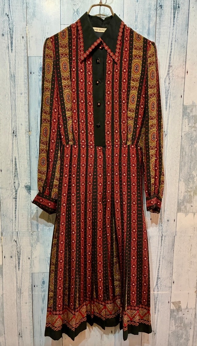 レトロヴィンテージ ロングポイント ベルト付きワンピース 70s80s