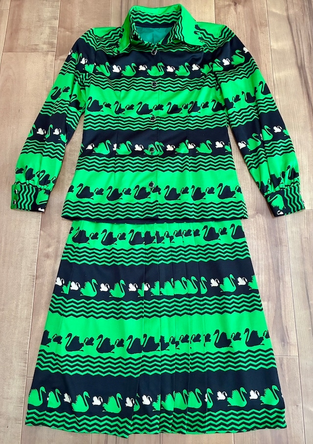 ヴィンテージ 白鳥 スワン柄 ブラウス&スカート セットアップ レトロ 70s 80s