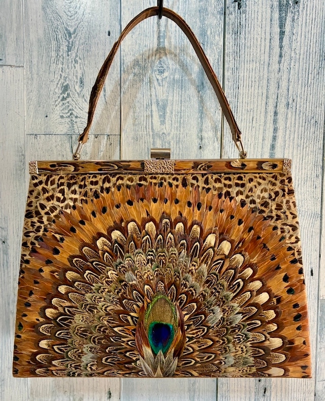 レトロ ヴィンテージ 孔雀羽 ハンドバッグ 鳥