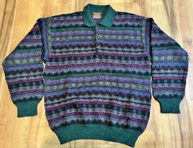 イタリア製ヴィンテージ アルパカ混 襟付き マルチカラーセーター