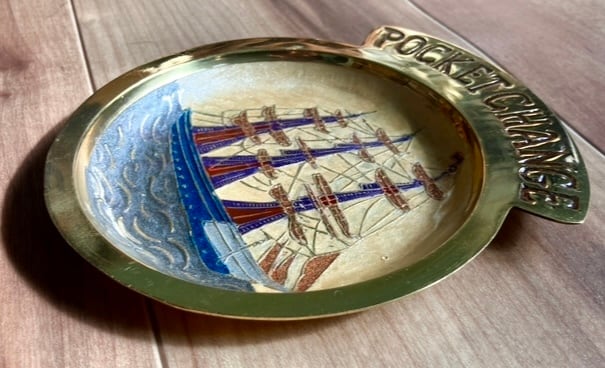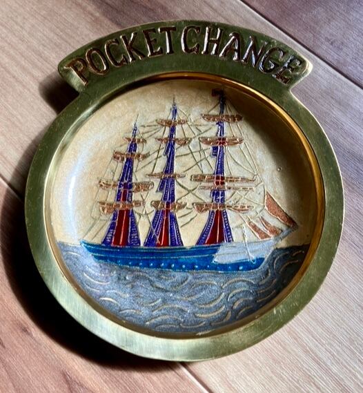 アンティーク ビンテージ 真鍮製 pocket change 小銭トレー 帆船柄 60s 70s