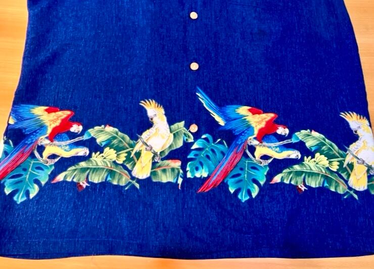 ビンテージPARADISE FOUND レーヨンハワイアンシャツ オウム柄 M アロハ