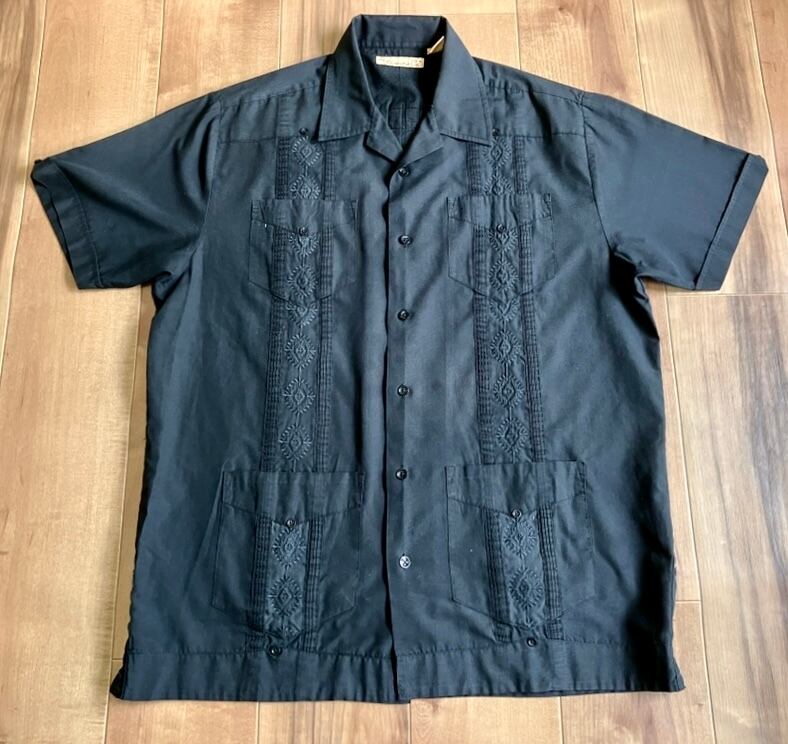 ビンテージ HAVANERA.Co オールブラック キューバシャツ グァジャベーラM