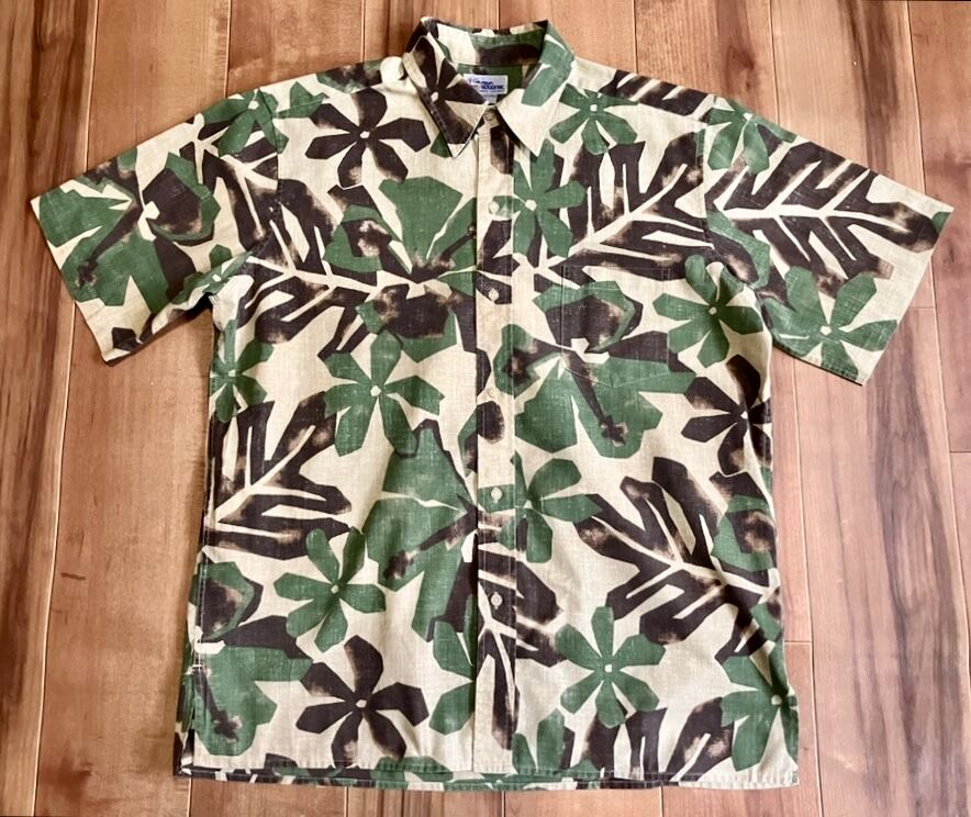 ビンテージreynspoonerレインスプーナー モンステラ カモフラージュ アロハシャツ