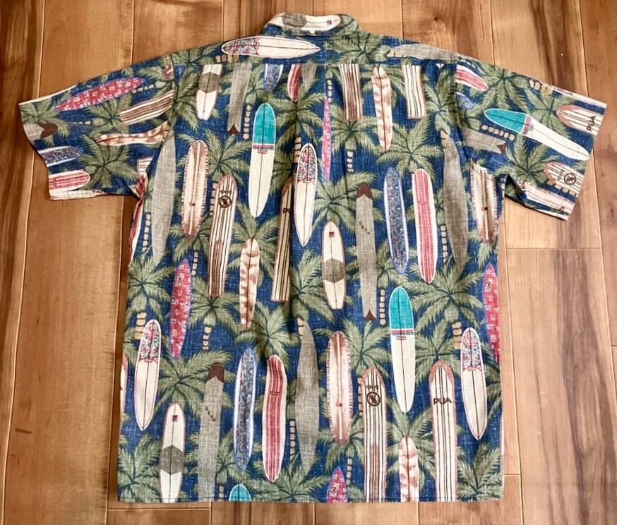 ビンテージreynspoonerレインスプーナー サーフボード柄ハワイアンシャツMアロハ