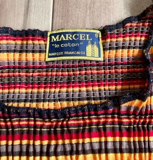 フランスブランド MARCEL ギャザー素材 マルチボーダーカットソー オレンジ系