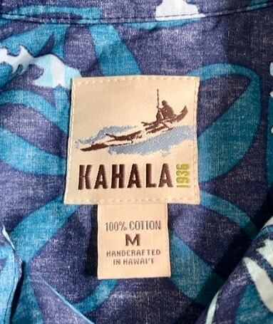 ハワイ製 KAHALA カハラ ブルー系 ハワイアンシャツ アロハM