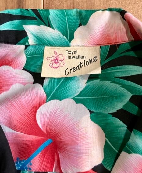ビンテージROYAL HAWAIIAN CREATIONS ハワイアンシャツ ブラック ピンク系