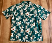 ハワイ製ビンテージROYAL CREATIONSグリーン系アロハシャツM