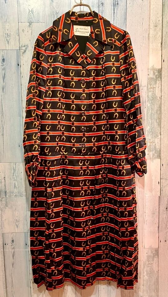 レトロビンテージ 蹄鉄 馬蹄 ベルト バックル柄 ワンピース 昭和