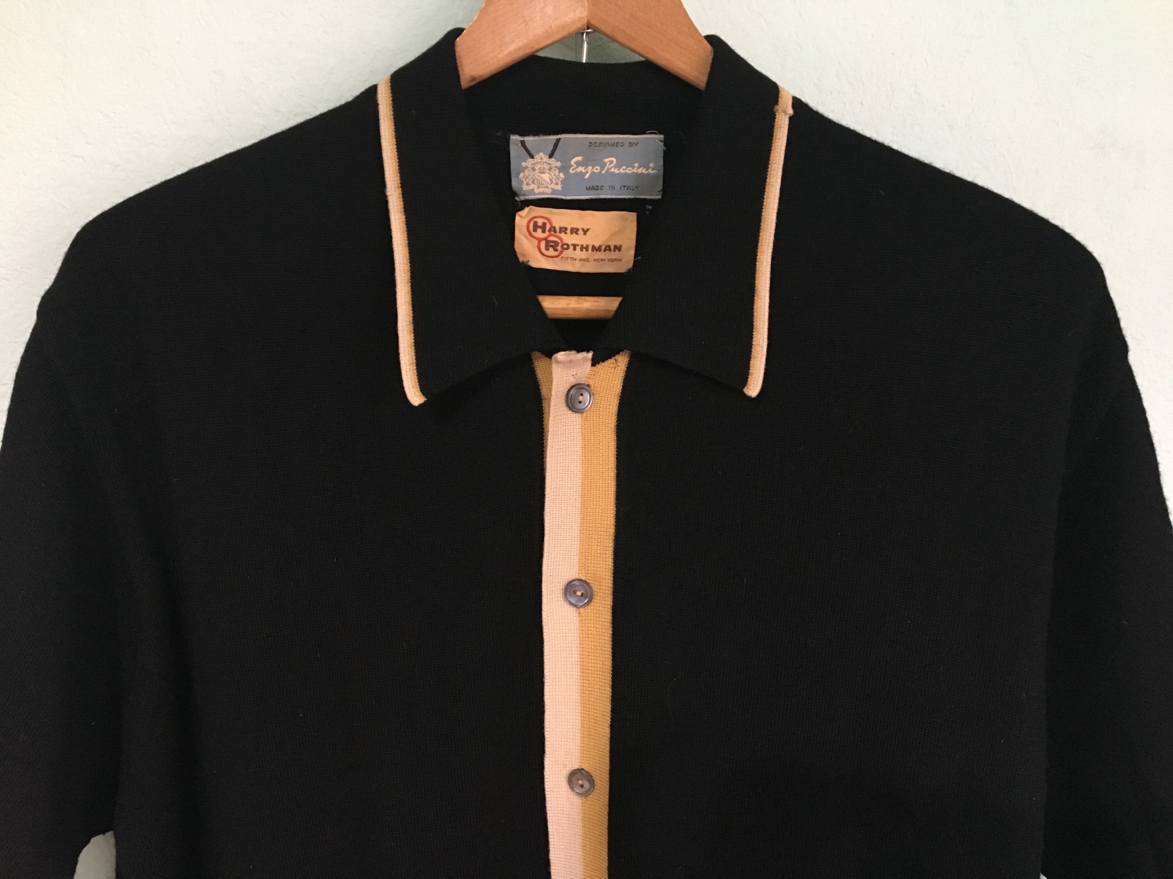 イタリア製 ビンテージ ライン入 ニットシャツ フロントボタン 50s 60s OLD / マフィア ギャング