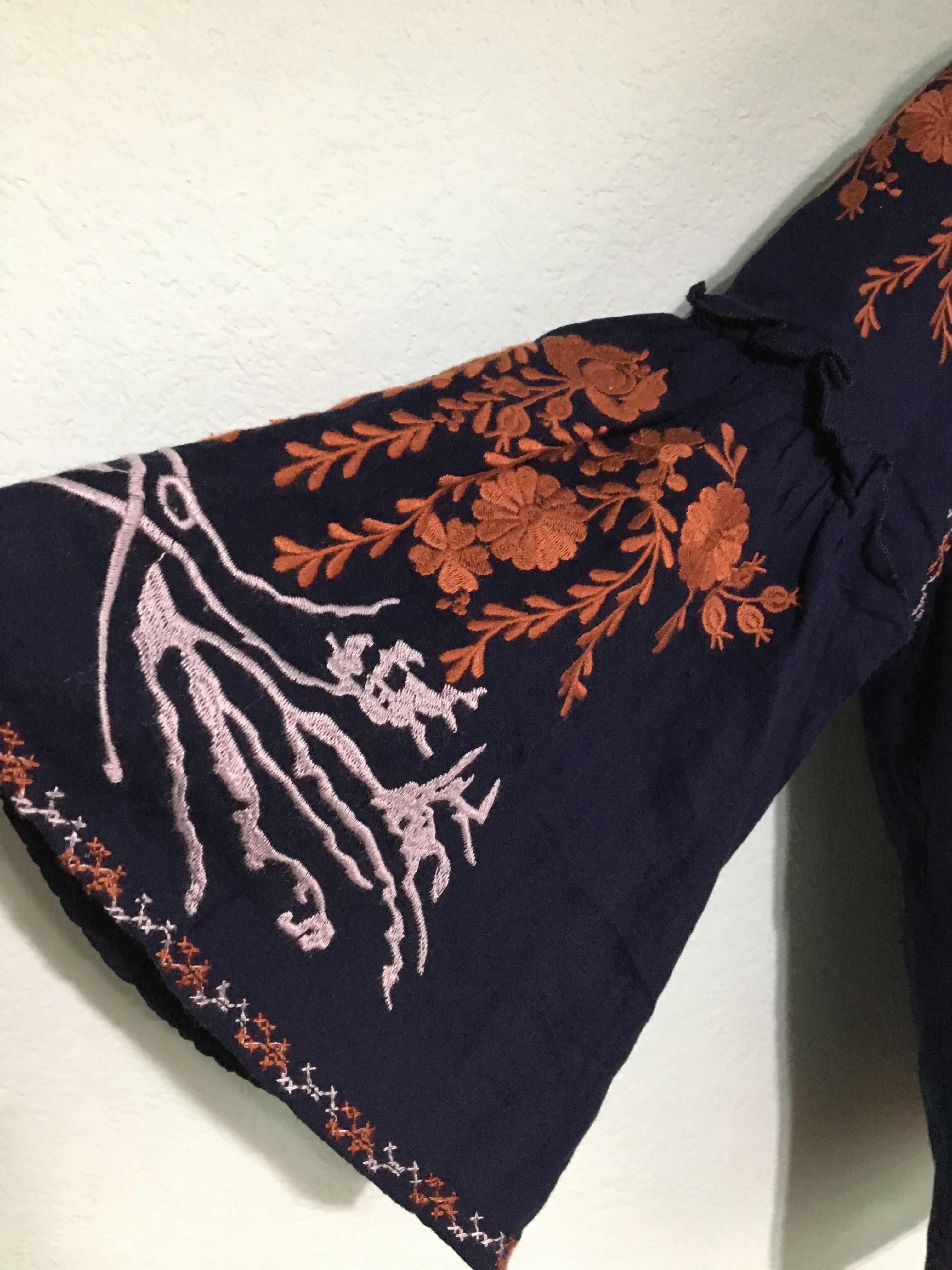 刺繍 ベルスリーブ 前明き シャツ チュニック ネイビー / ヒッピー ボヘミアン