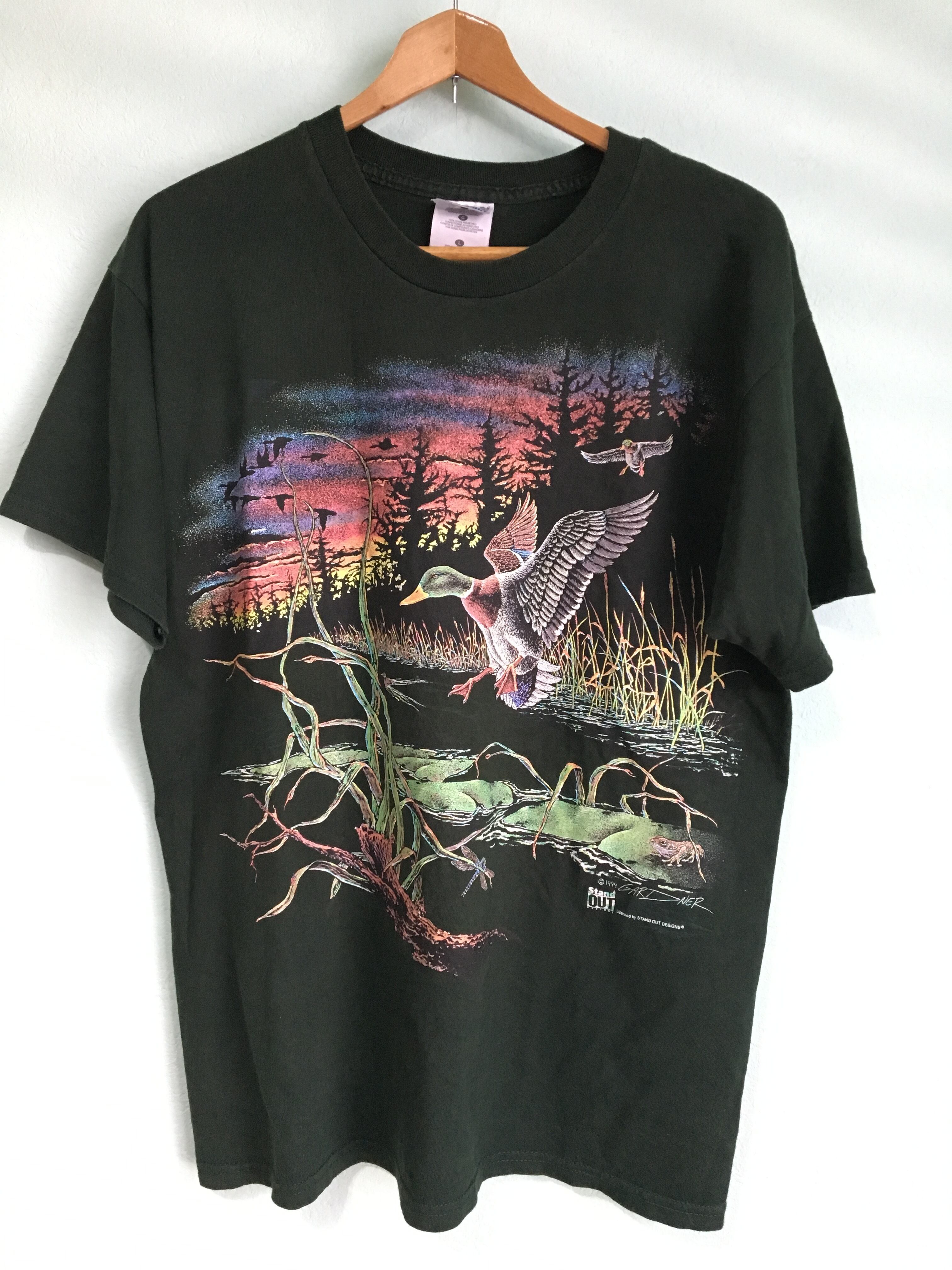 US 90s ビンテージ カモ 鴨 鳥 リアルプリントTee / 自然 ネイチャー 動物 アニマル アウトドア