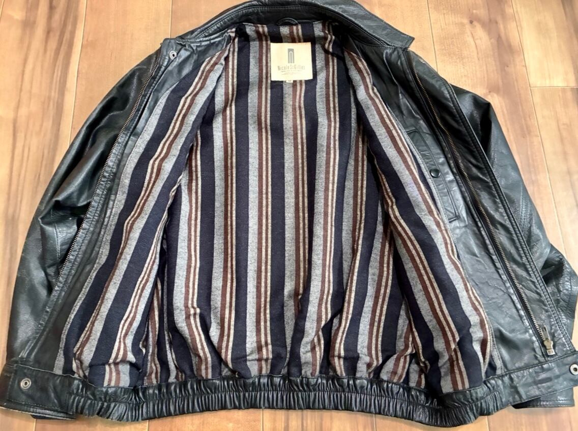 ヴィンテージ ニコルサンジェル ブラック×グレー バイカラーレザージャケット M
