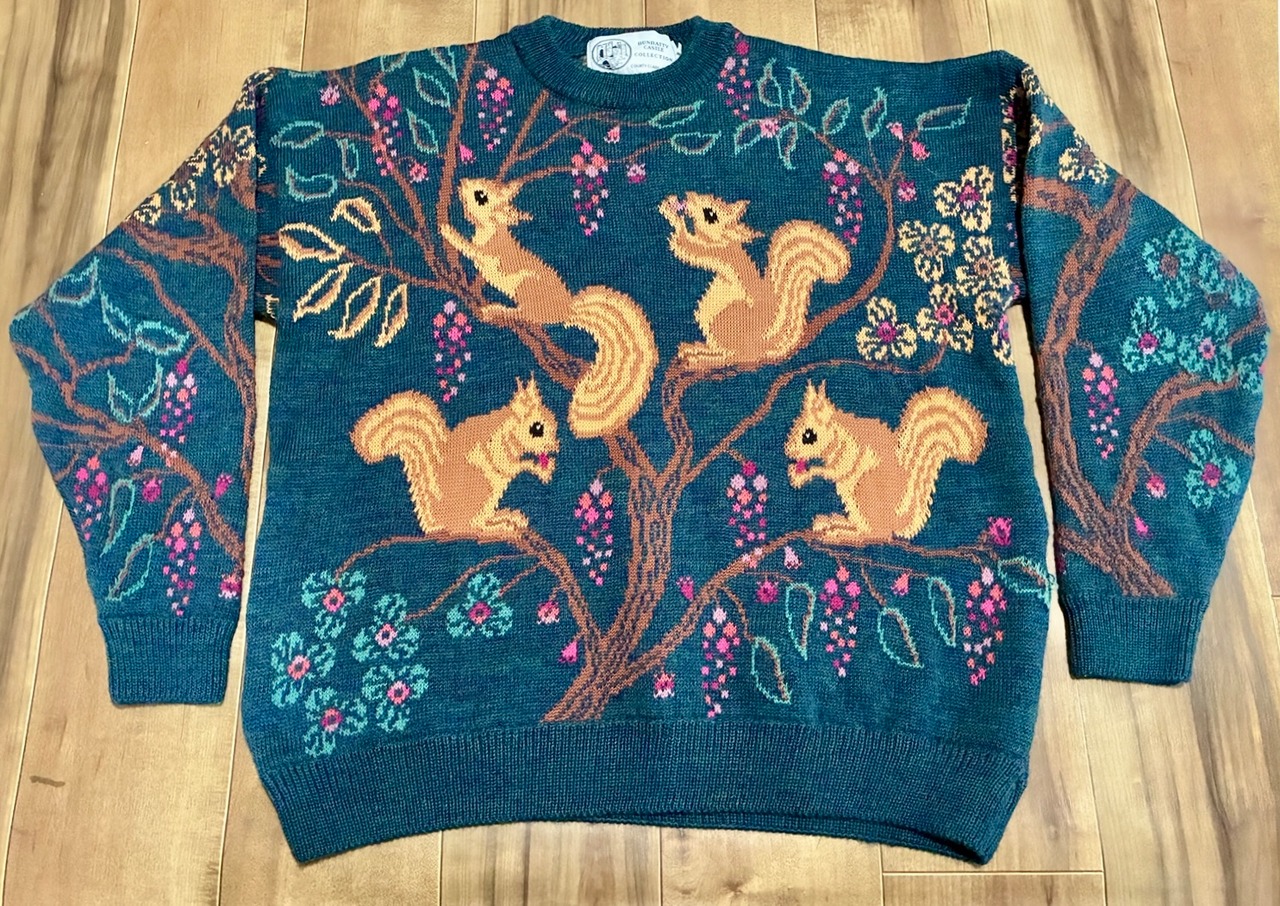 アイルランド製 ヴィンテージ リス 動物柄 ニット セーター XL