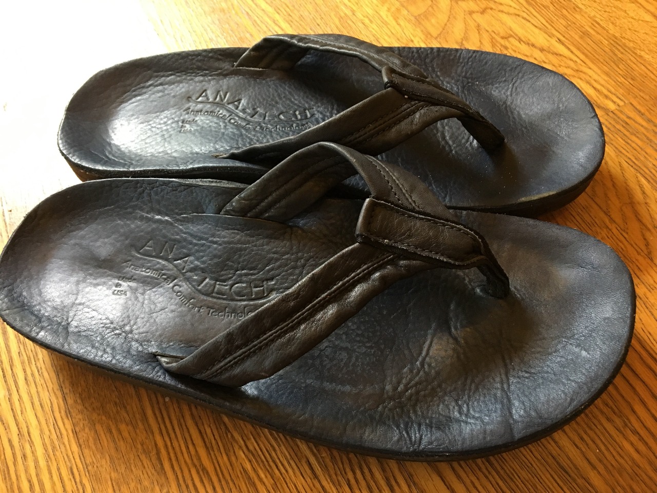 アメリカ製 ANA-TECH アナテック 高級 レザーサンダル ネイビー×ブラック 希少 41インチ 26-26.5cm