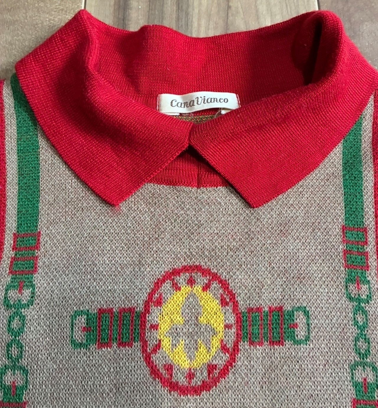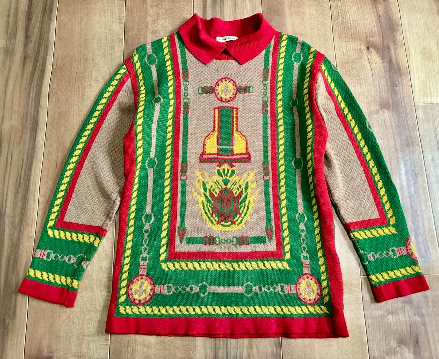 ヴィンテージ 襟付き アート柄 ニット セーター