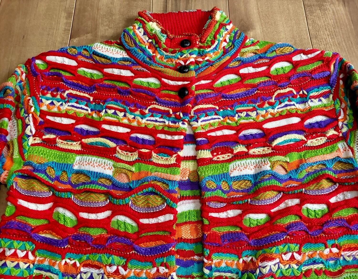 マルチカラー 3Dニット ロングカーディガン コート COOGI好きにも