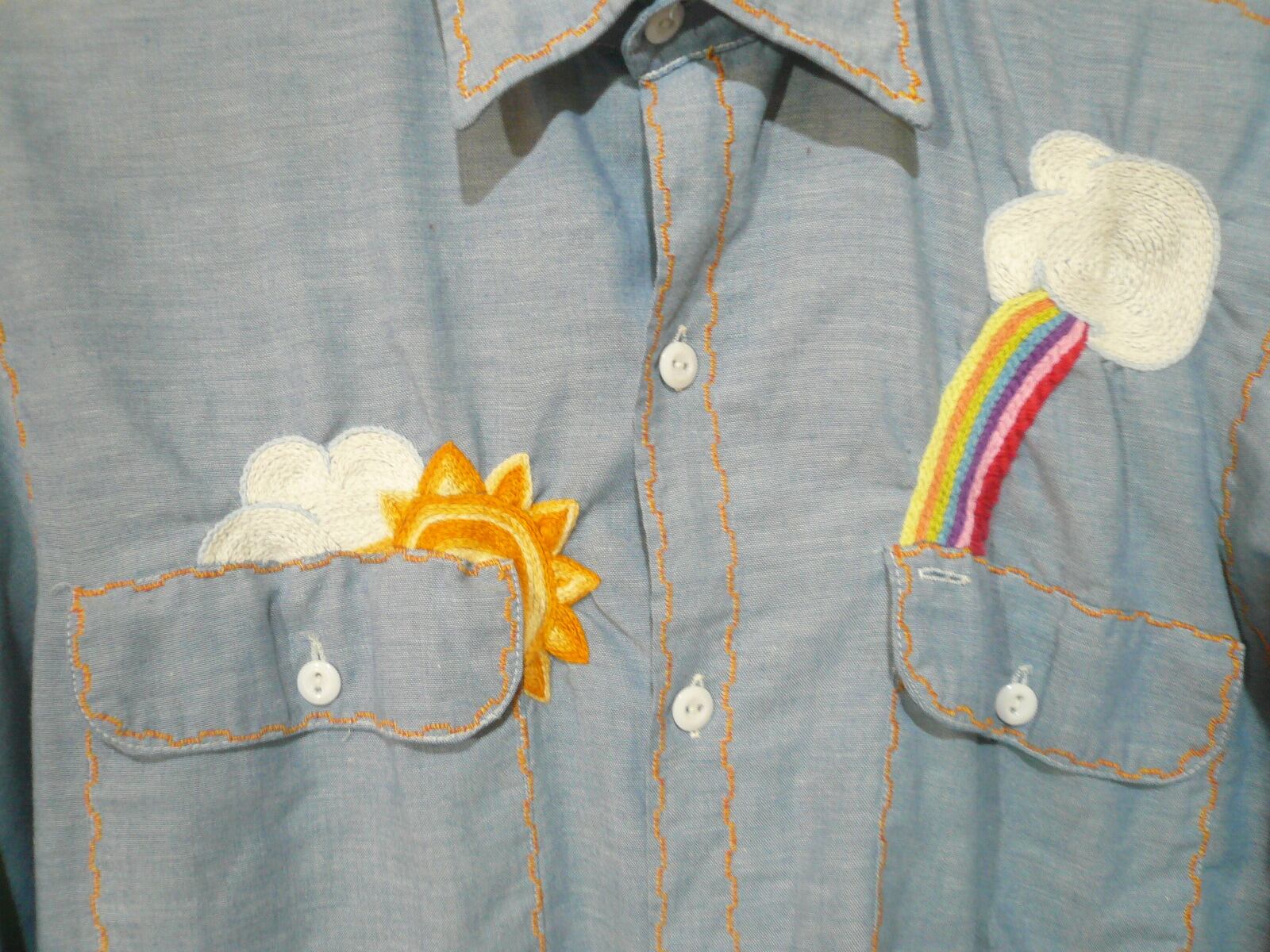 USビンテージ レインボー刺繍シャンブレーシャツ