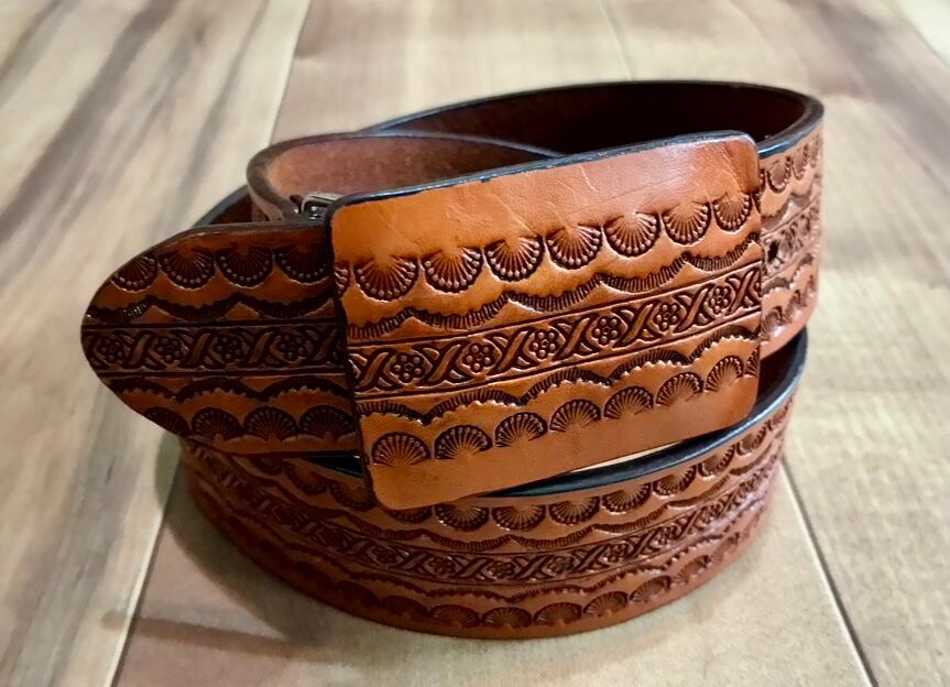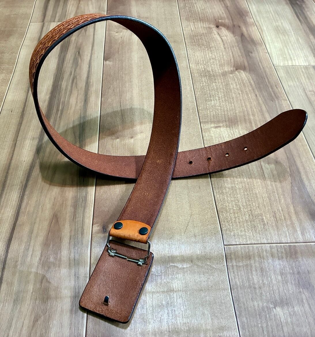 レザーベルト 型押し スタンプ ブラウン系 茶