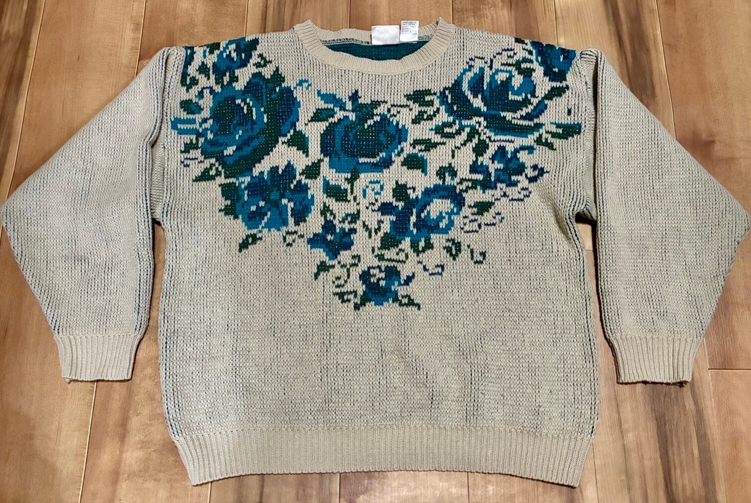 ヴィンテージ 薔薇 草花柄 クルーネックセーター L