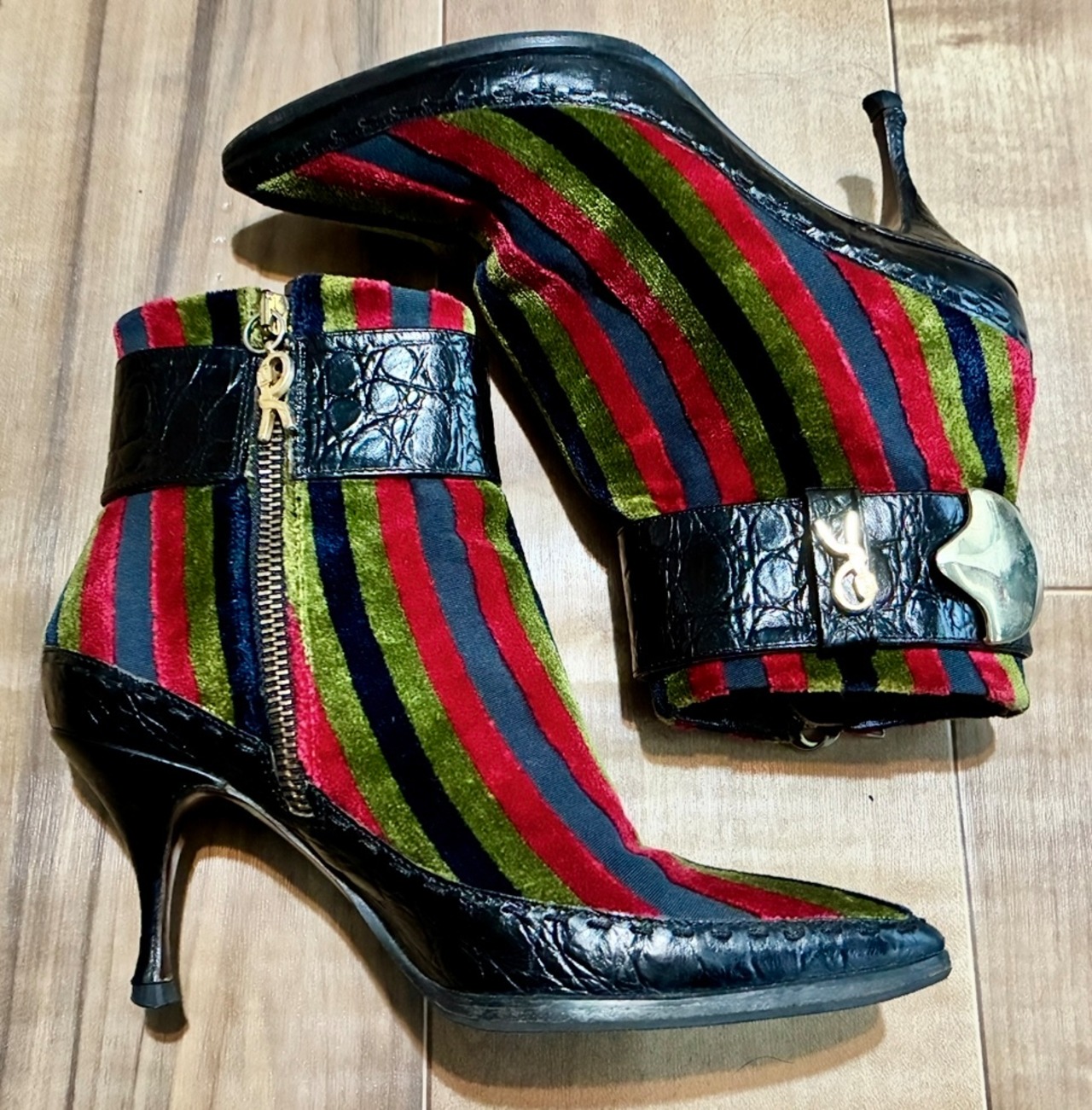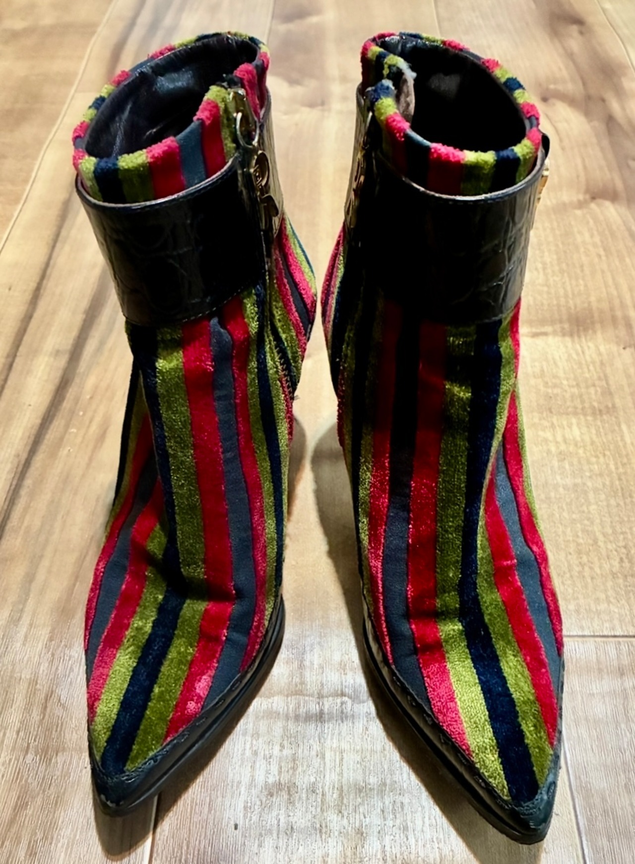 roberta di camerino ロベルタストライプベロアピンヒールブーツ36