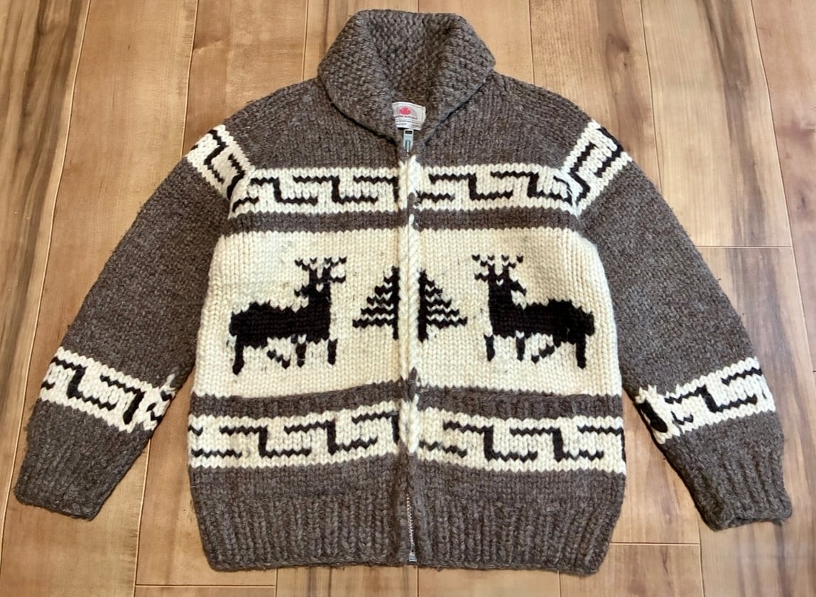 カナダ製ヴィンテージ 鹿柄 フロントジップ カウチンセーター