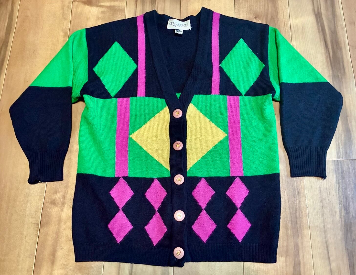 イタリア製ヴィンテージ 幾何学柄ニットカーディガン 90s