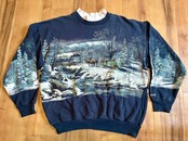 アメリカ製ヴィンテージ 馬車シカ雪山プリントスウェット80s90s