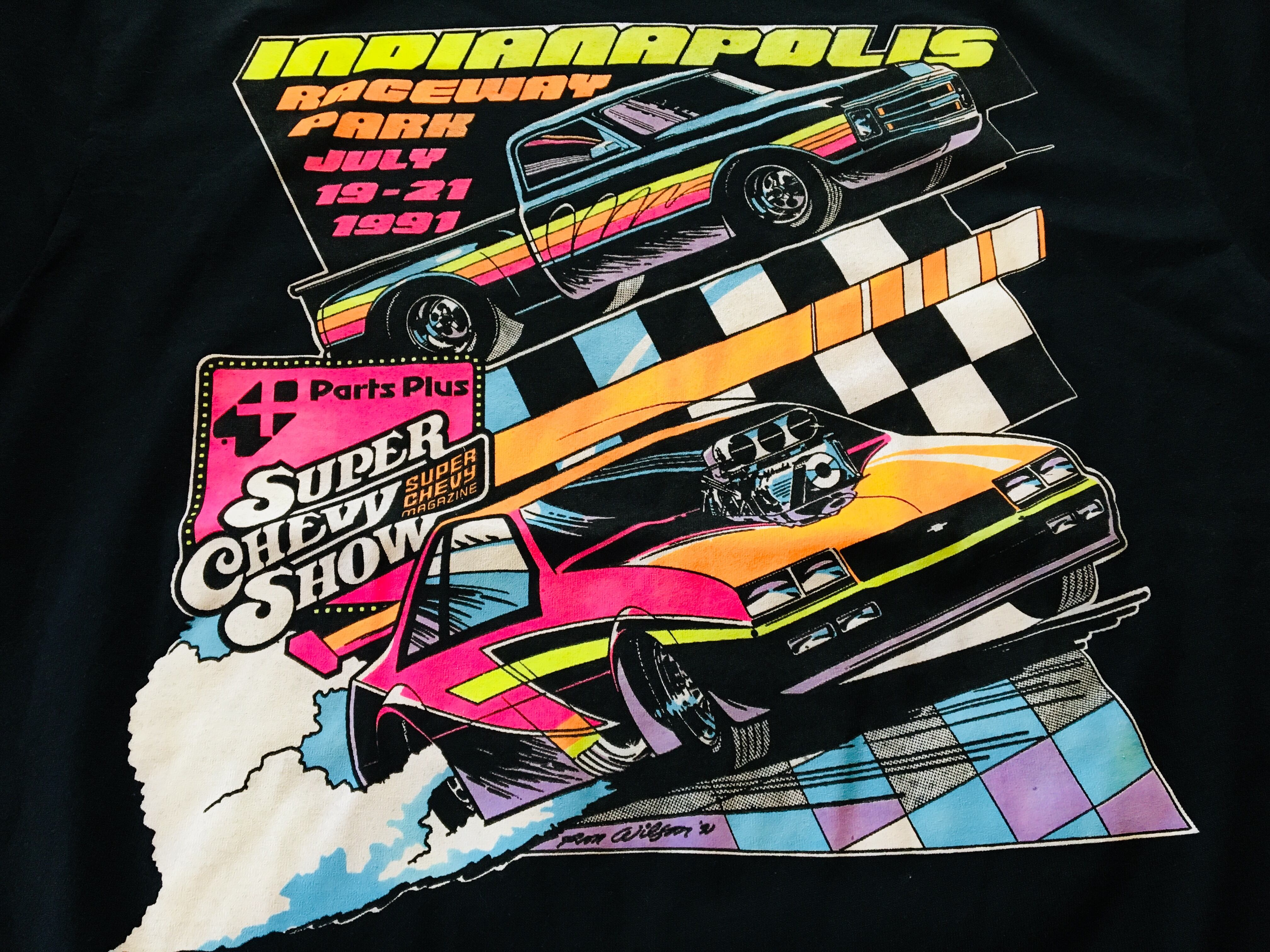 アメリカ製 シングルステッチ 1991年 スーパーシェビーマガジン インディアナポリス カーイベント Tシャツ shevy アメ車 旧車
