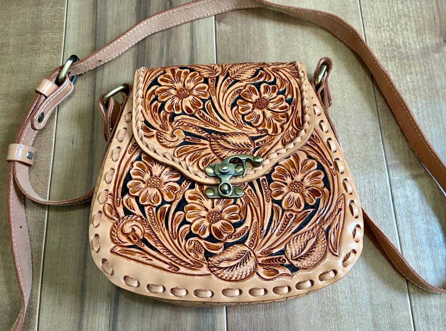 カービングレザーバッグです