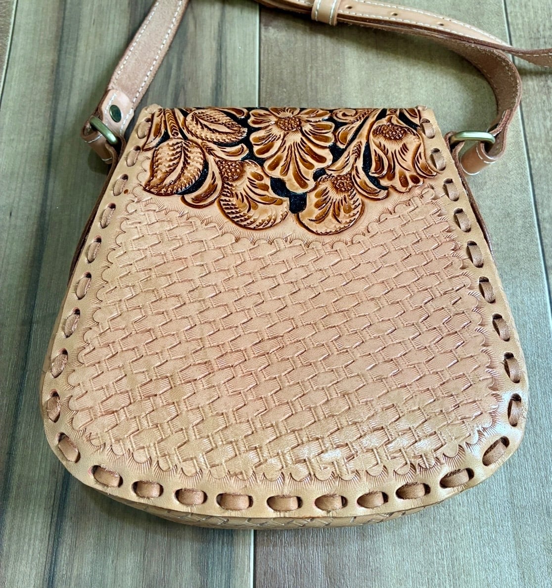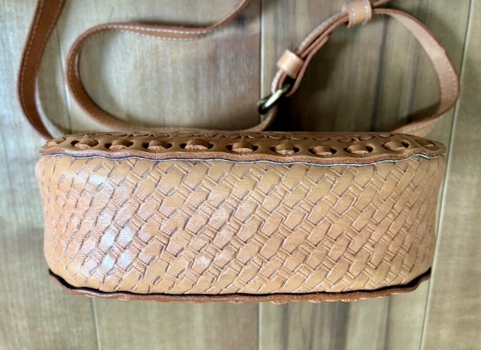 カービング&バスケット型押 レザー ショルダーバッグ