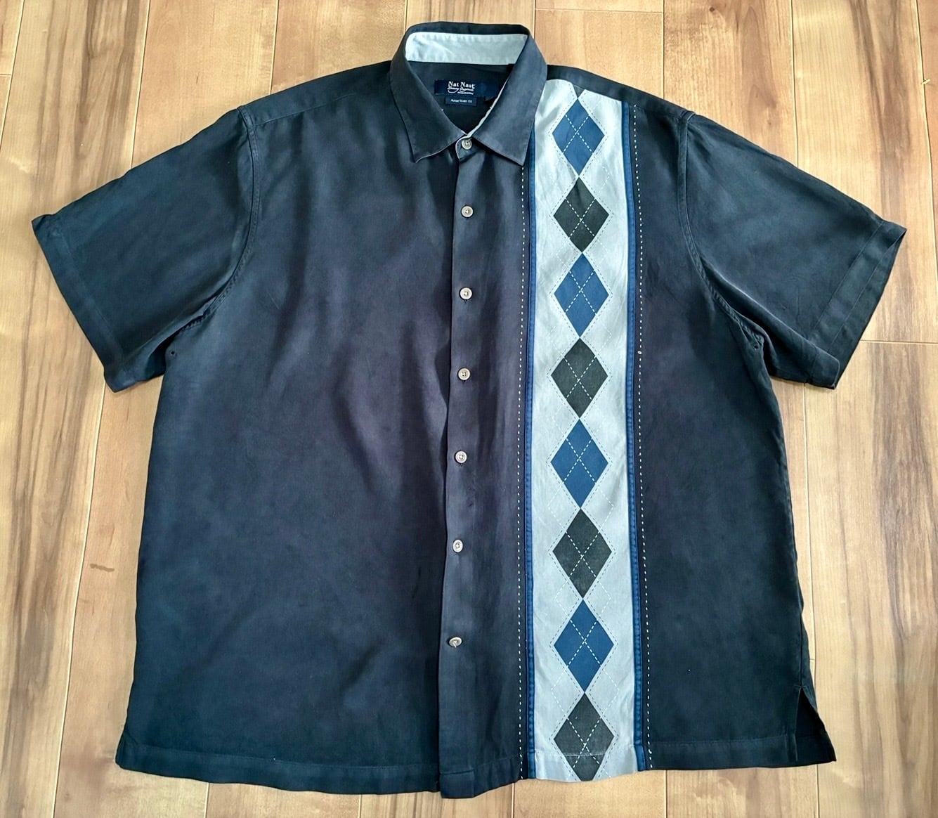 ヴィンテージ NATNAST アーガイル柄 シルクシャツ XL ロカビリー