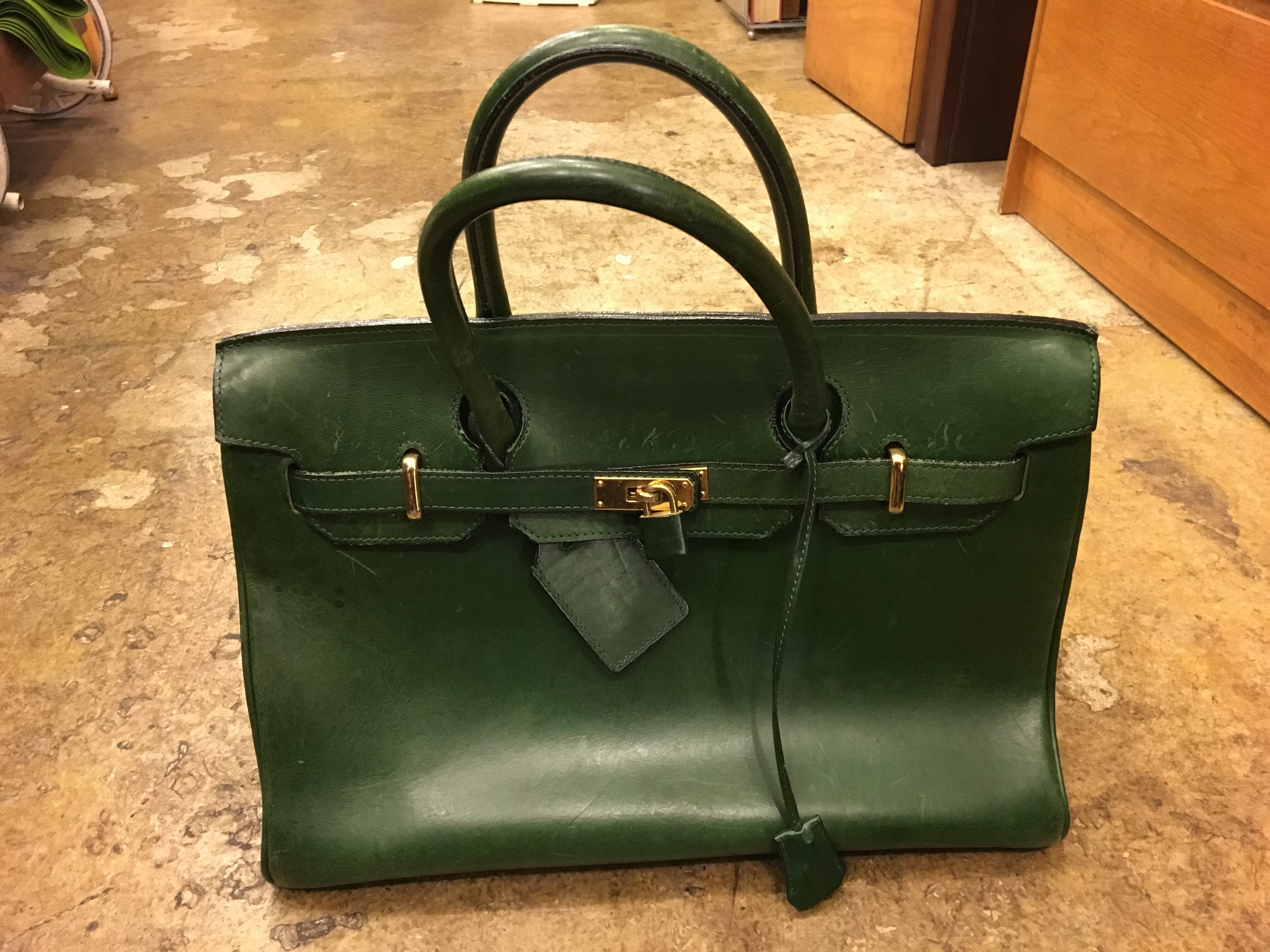 バーキンタイプ 上質レザーバッグ 深緑 グリーン
