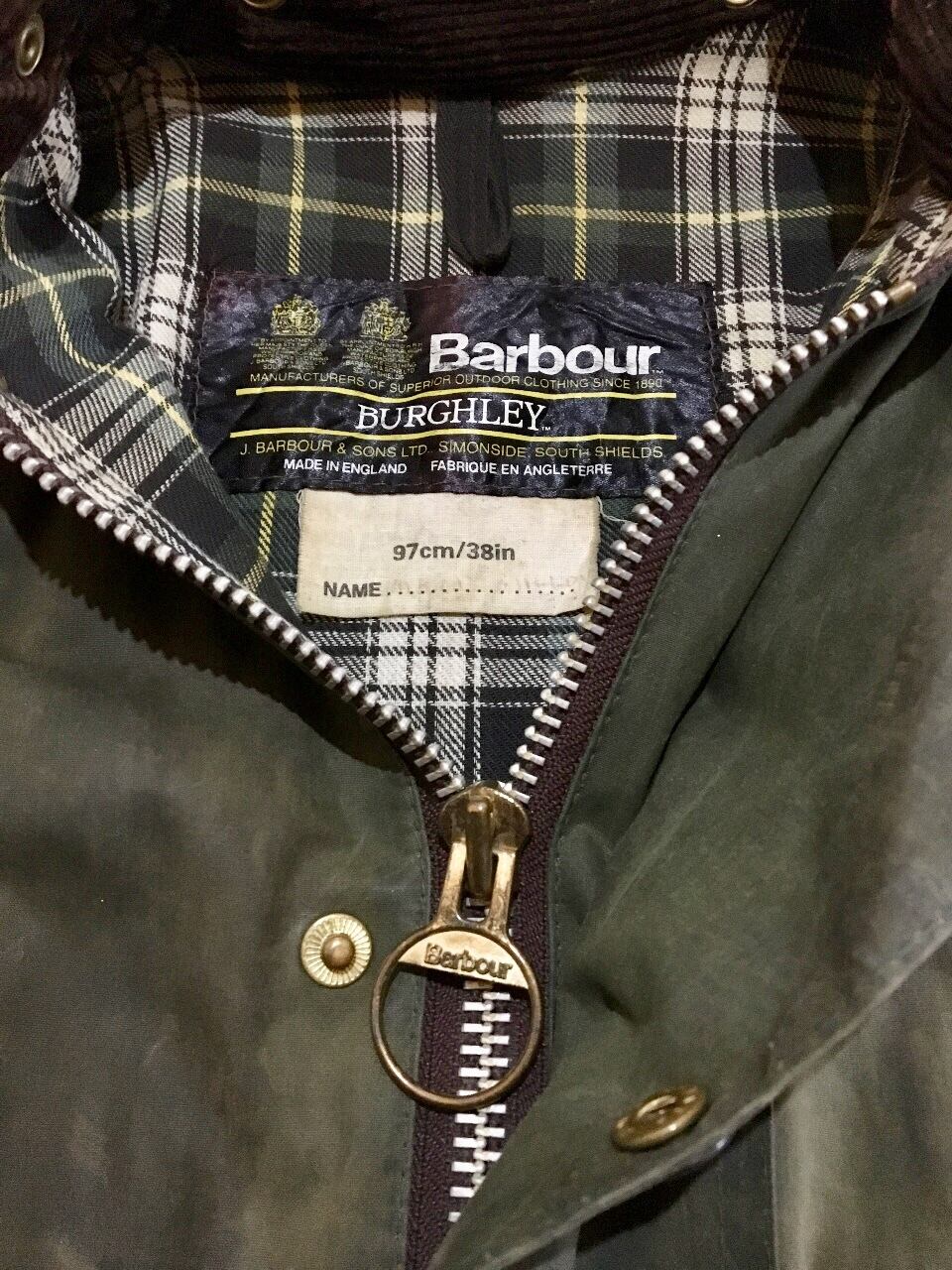 ビンテージ barbour バブアー 希少モデル burghley バーグレー オイルド ロングコート38 2ワラント