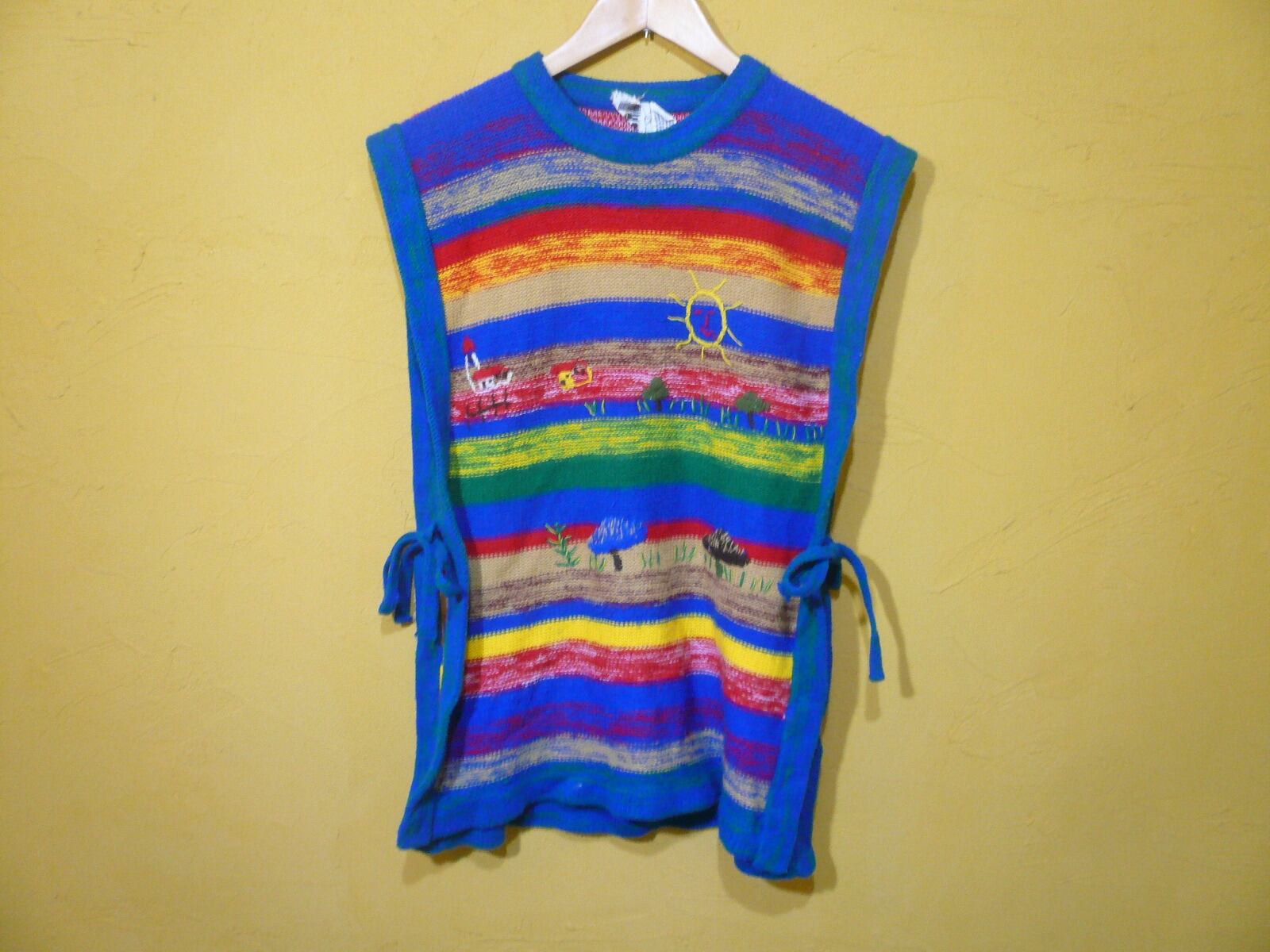 USビンテージレインボー刺繍ニットベスト/メキシカンヒッピー70s