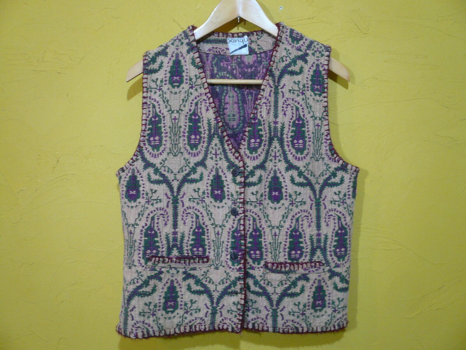 US古着柄物ベスト/ヒッピーボヘミアンサイケゴブランOLD