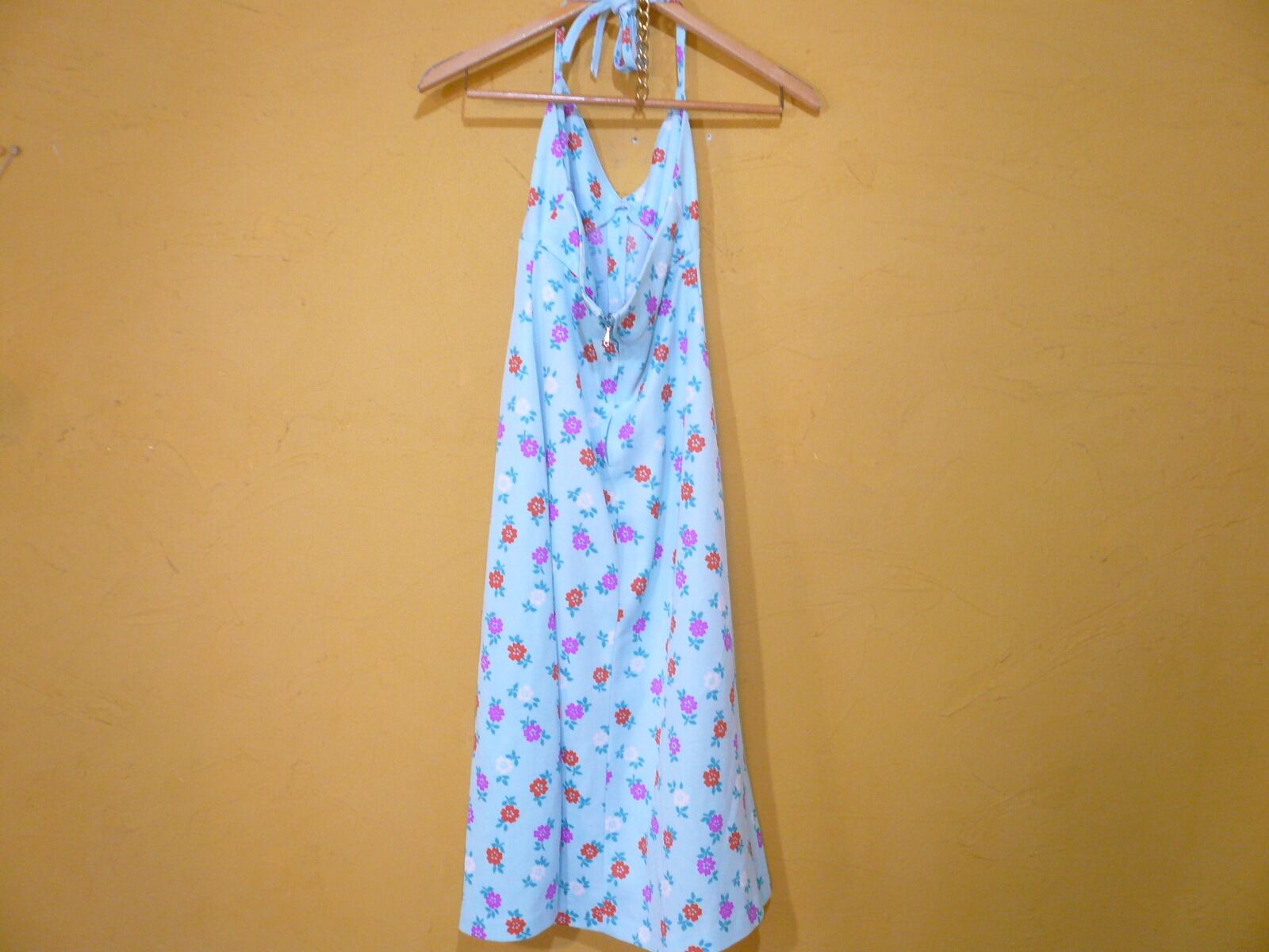 USビンテージ小花柄ポリワンピース水色系/70sヒッピーボヘミアン