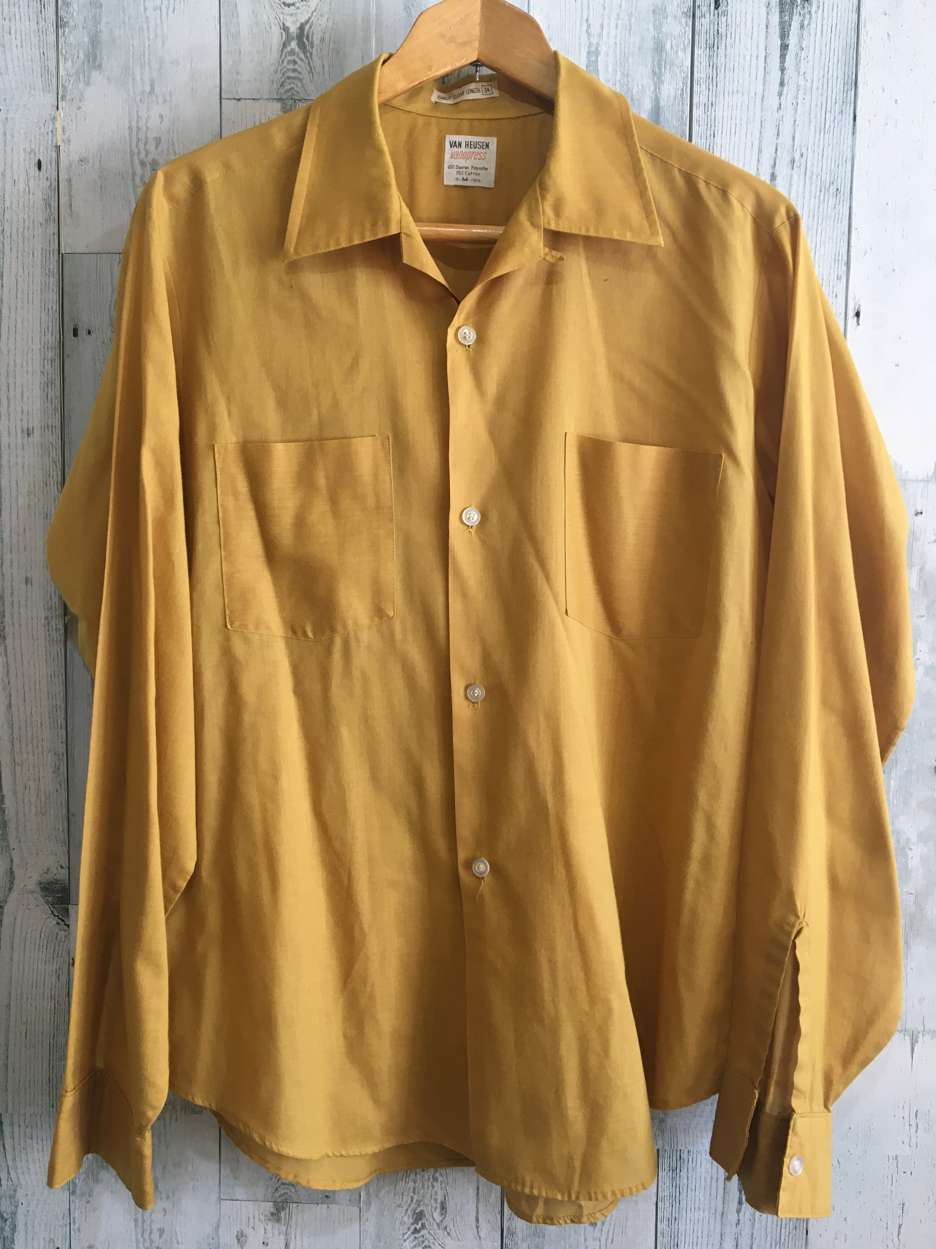 アメリカ製ビンテージvanheusenオープンカラーシャツマスタード60s70s