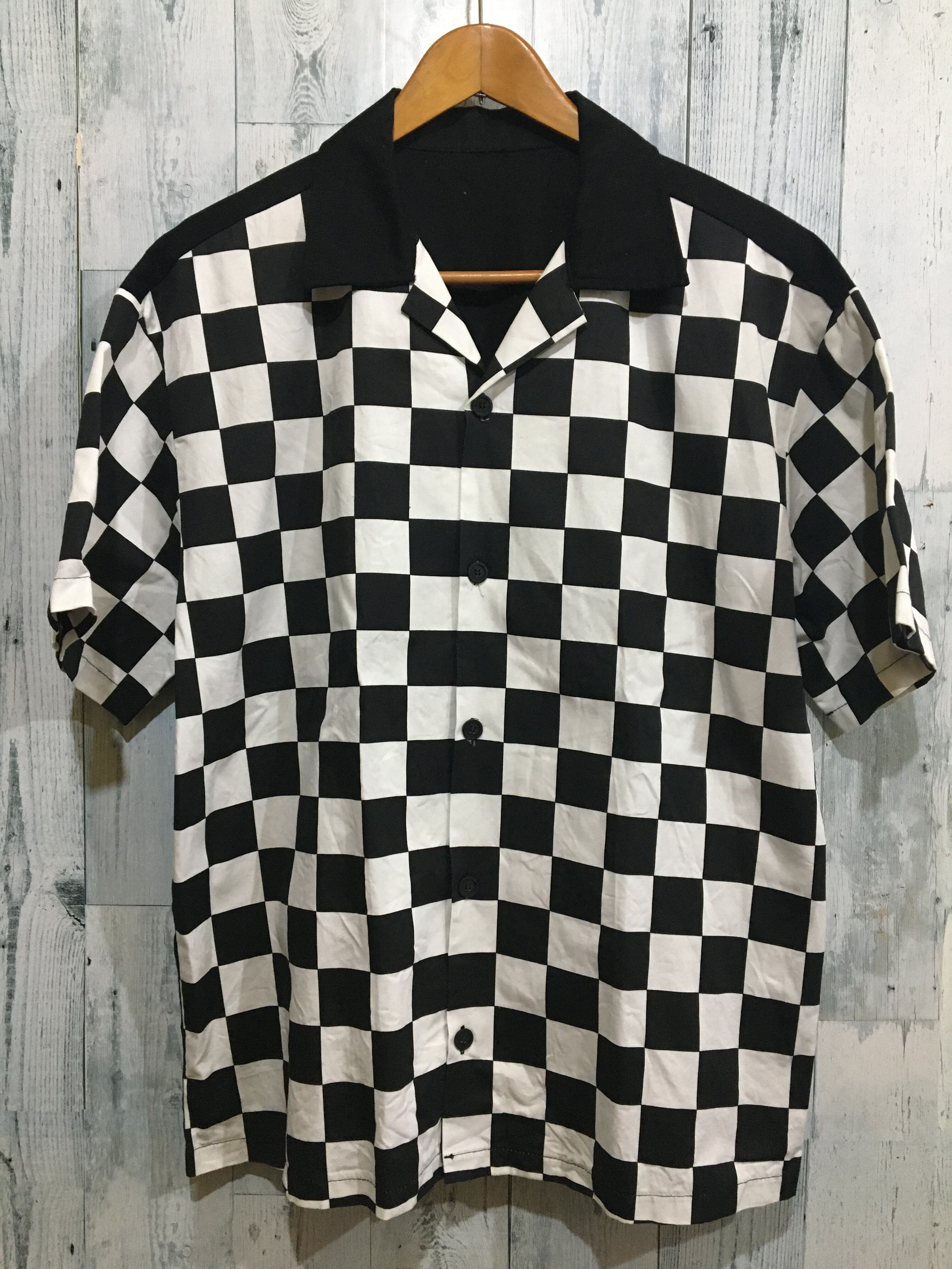 チェッカー柄 オープンカラー 開襟シャツ 市松模様 2トーン 衣装