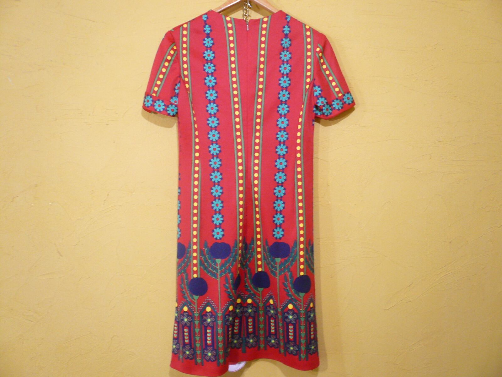 US ビンテージ 花柄 ワンピース 赤系 / 60s 70s OLD ヒッピー ボヘミアン
