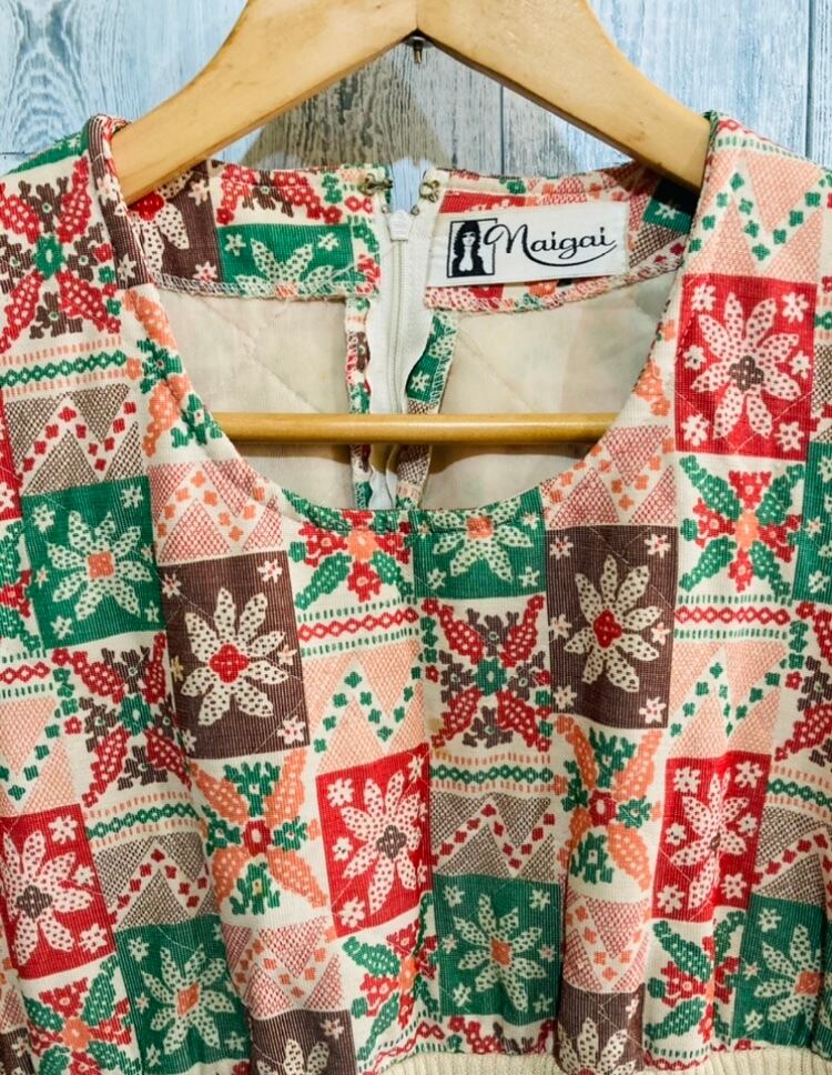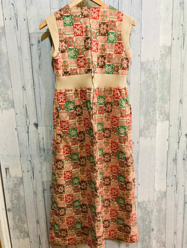 ビンテージ 柄物キルティング マキシワンピース 70s昭和レトロ