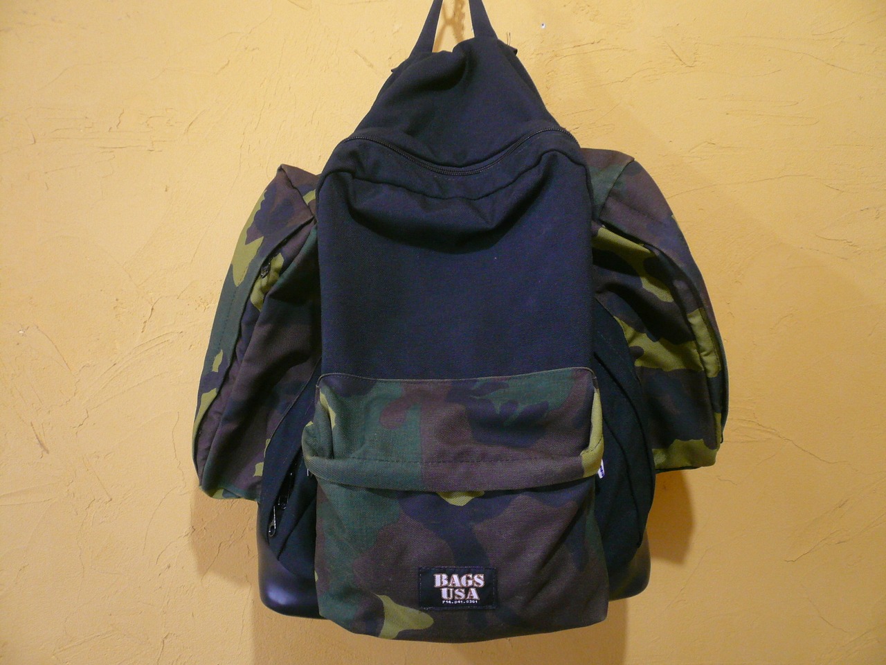 アメリカ製BAGS USAブラック×カモフラージュバックパック