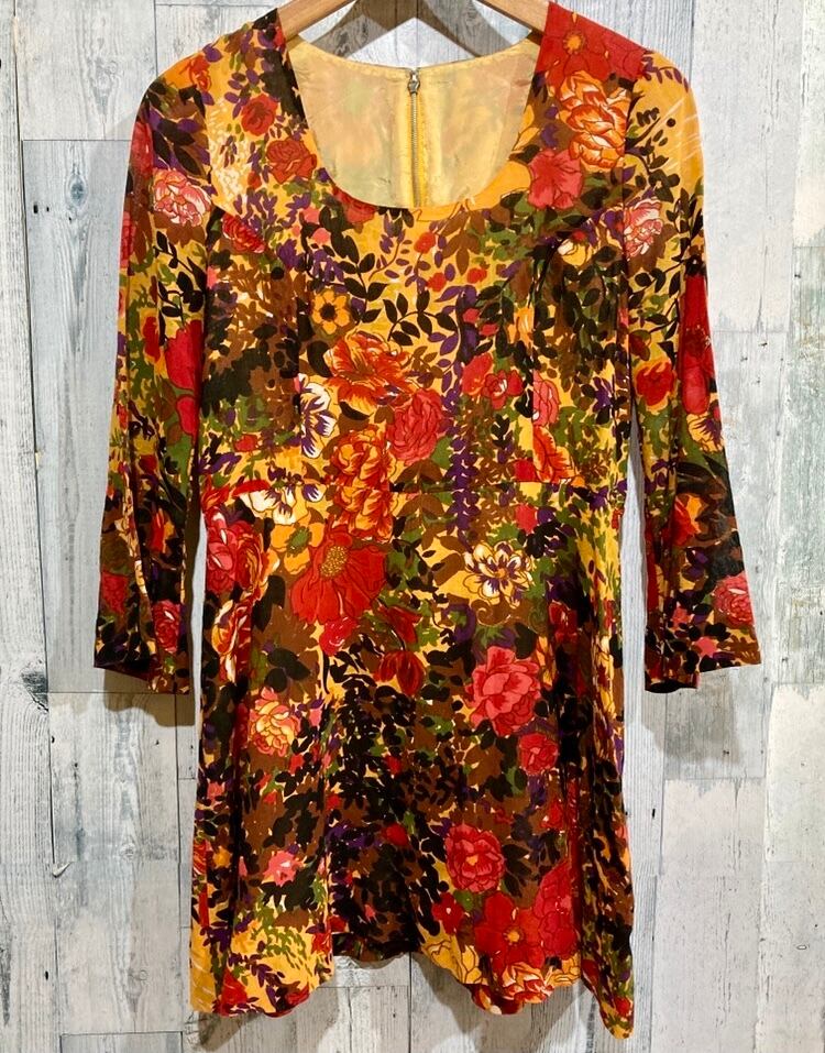 ビンテージ レトロ花柄ワンピース 70s80sヒッピーボヘミアン