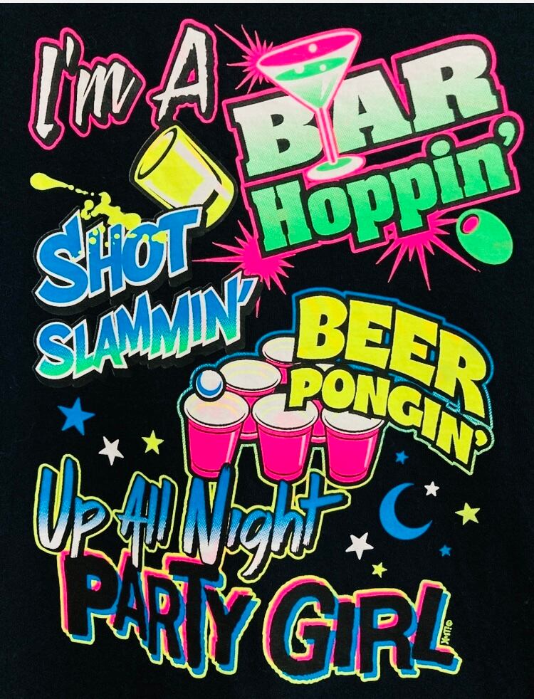 ビンテージPARTY GIRLネオンカラーTシャツ 90sビールパーティー
