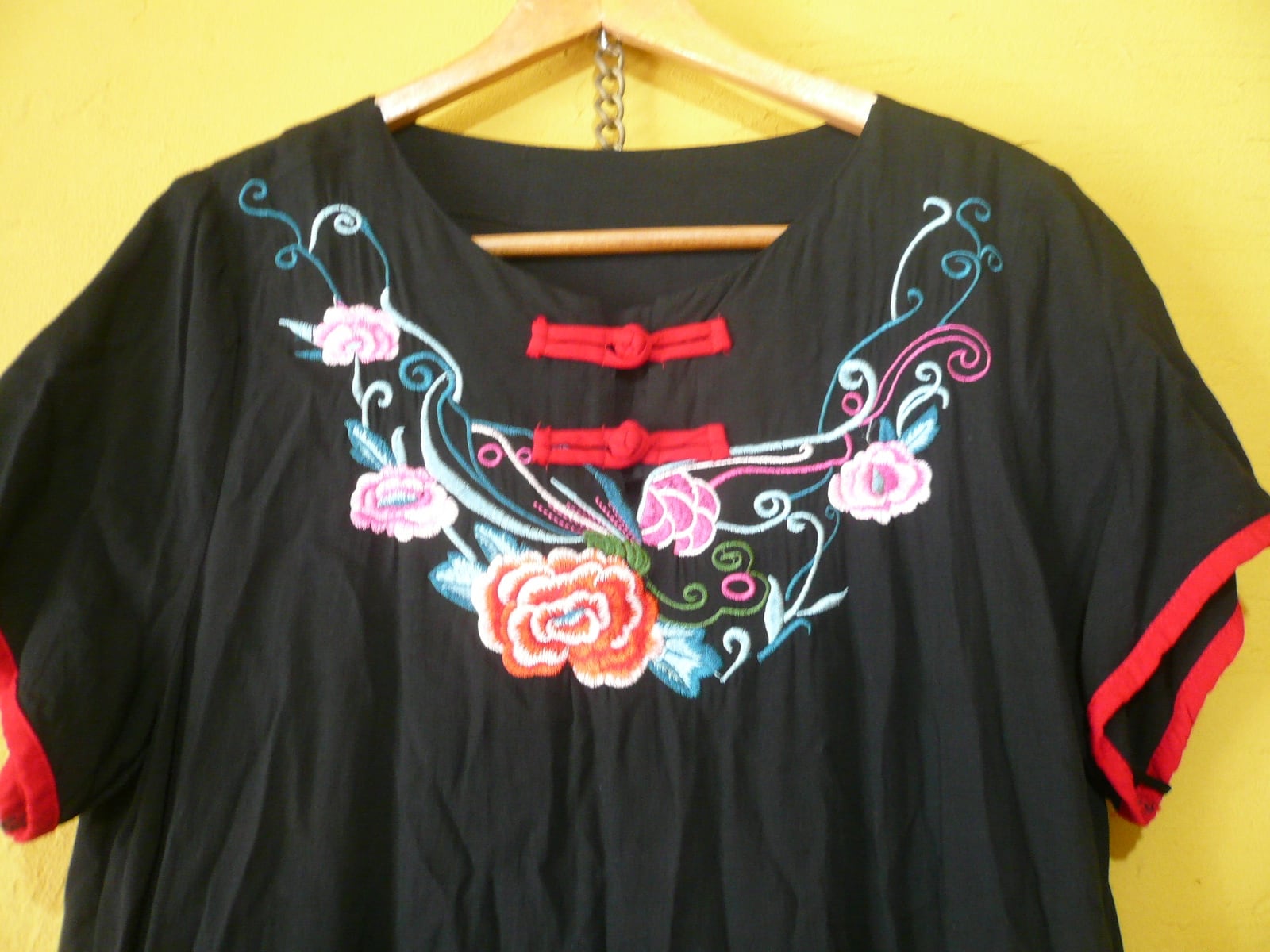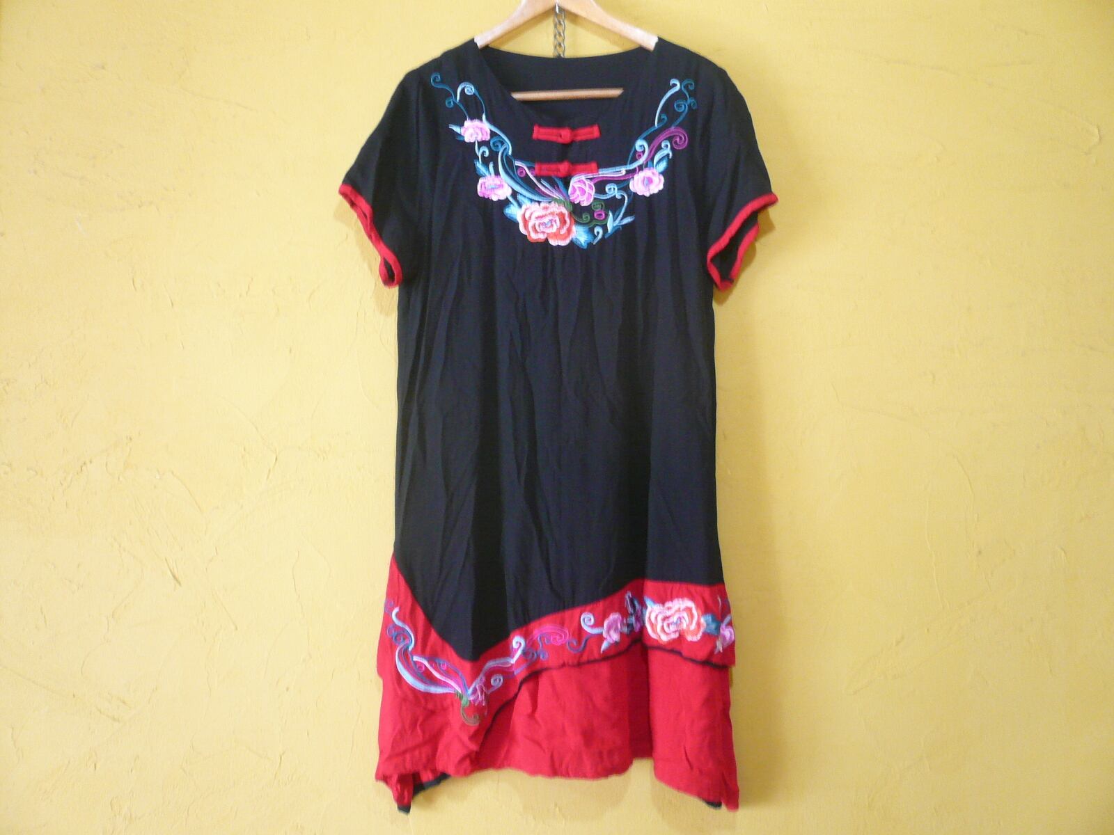 刺繍入チャイナドレス風チュニックワンピース/レトロOLD