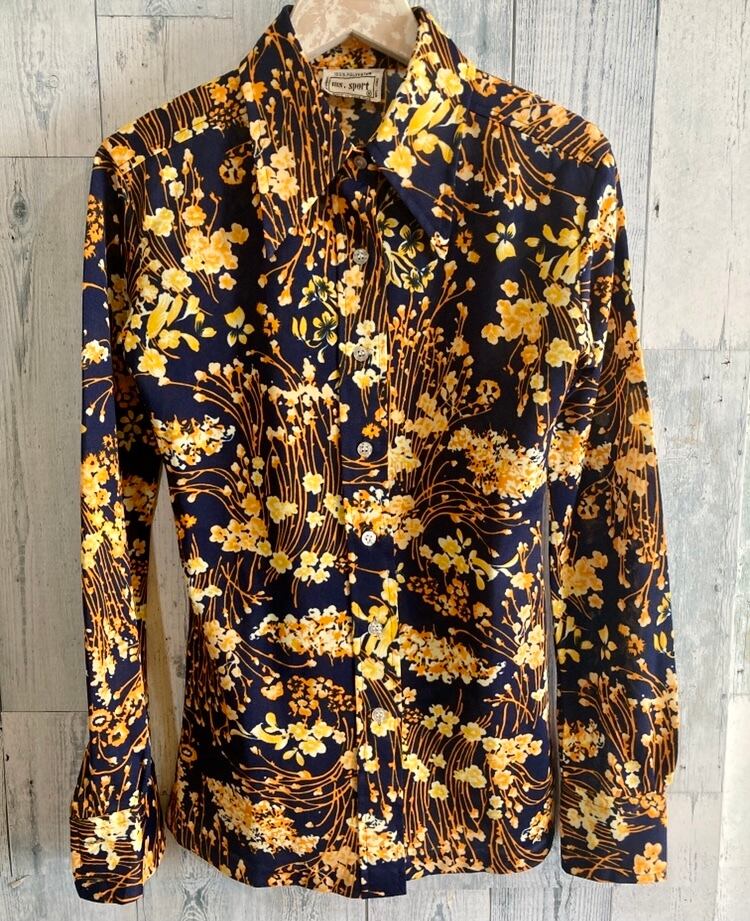 ビンテージ 柄物 ポリシャツ ディスコ ヒッピー 70s