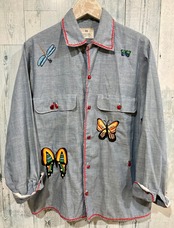 ビンテージBIGMACバタフライ刺繍カスタムシャンブレーシャツ70s80sヒッピーボヘミアン