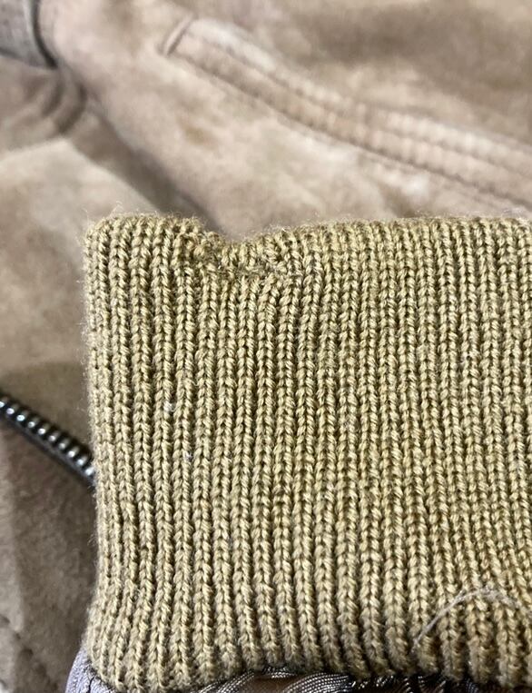 襟のリブに数カ所、袖口リブに一箇所